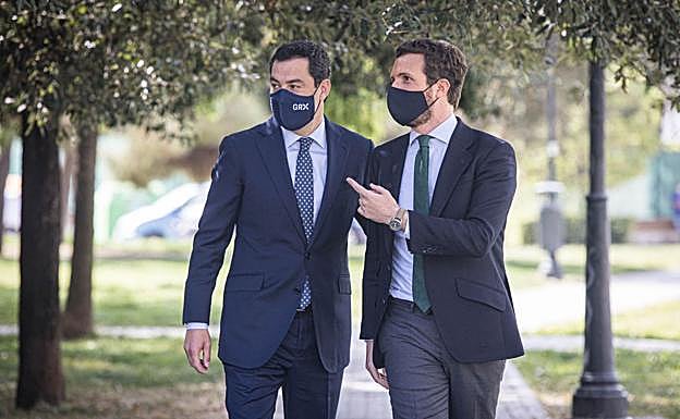 El presidente nacional del PP, Pablo Casado y el presidente de Andalucía y líder regional del partido, Juanma Moreno, han clausurado esta tarde la reunión ... del Consejo provincial de alcaldes y portavoces del PP de Granada. Un acto interno, celebrado en la sede del PP granadino, que ha servido para escenificar la unidad y la sintonía del PP nacional y regional tras la crisis interna abierta a cuenta del congreso de los populares de Sevilla.