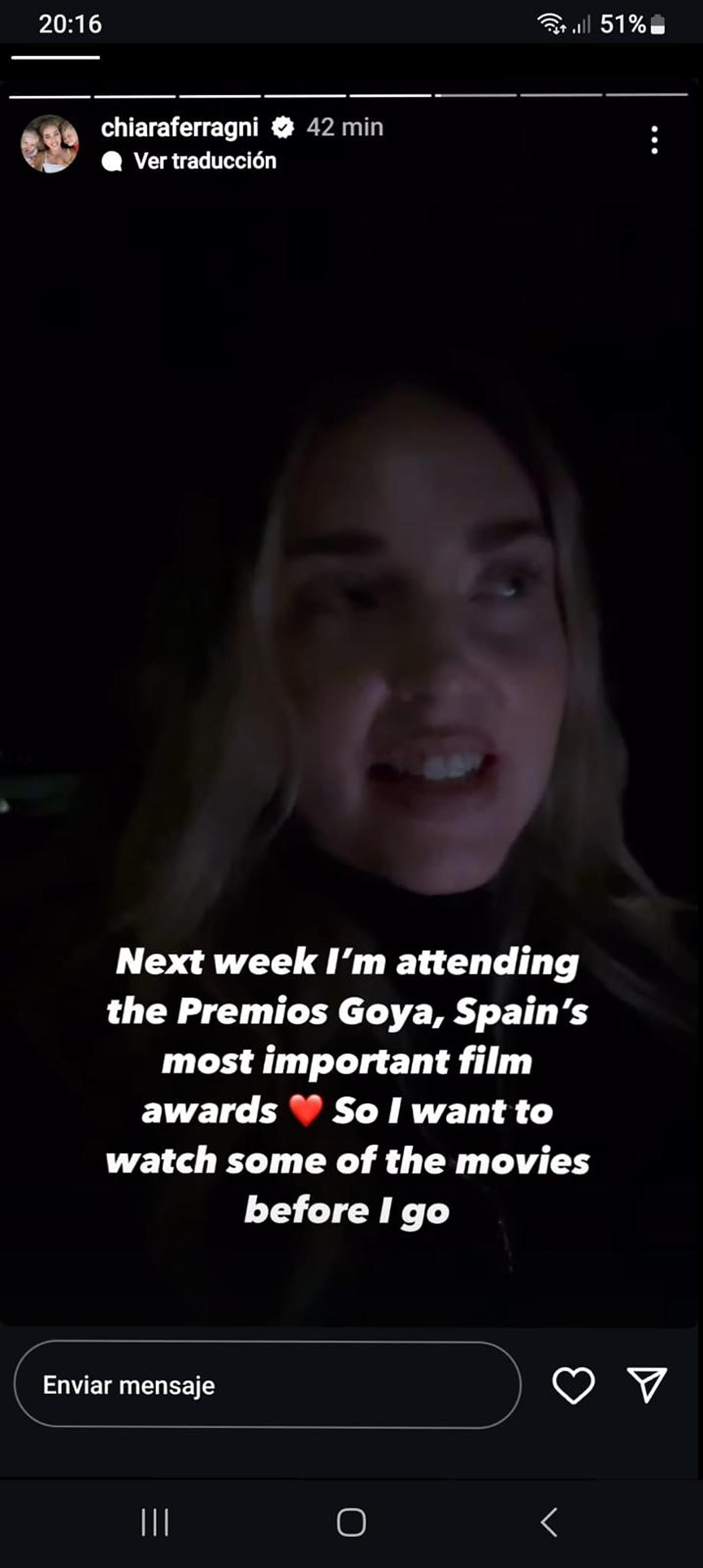 Después en italiano cuenta que la próxima semana irá a los premios Goya y que para ella «es importante conocer a las películas candidatas». Recuerda que son los galardones más importantes del cine español y pide una curiosa ayuda que ha dejado a los seguidores estupefactos.