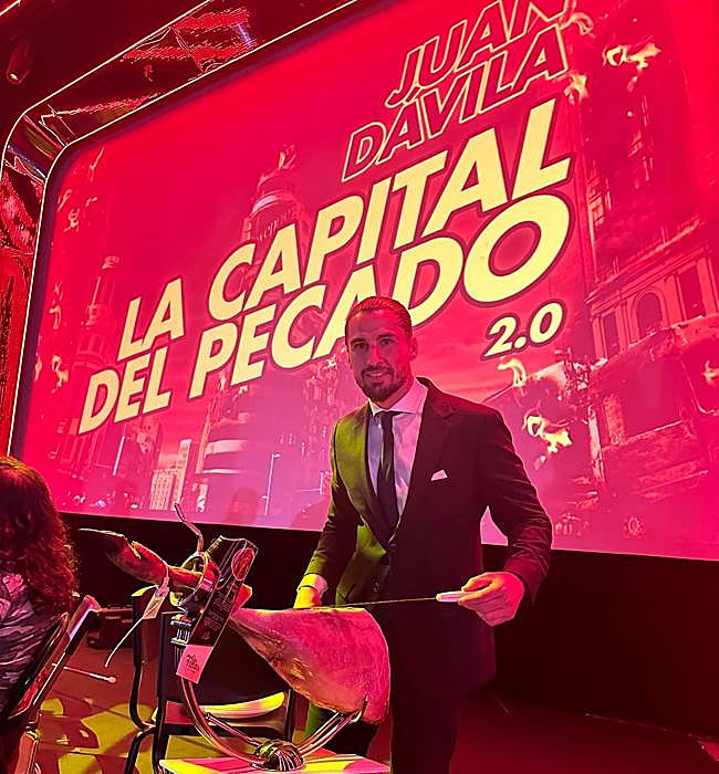 El granadino José Navarro, cortador de jamón profesional que trabaja en uno de los restaurantes del afamado chef José Andrés en Chicago (Estados Unidos), participó ... hace unos días en el show de humor de Juan Dávila, 'La Capital del Pecado 2.0', en el Teatro Capitol de Madrid. Una experiencia diferente para el de Santa Fe ya que era la primera vez que trabajaba en un show de estas características.