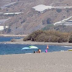 La playa tiene otra parte que llaman Las Cañas' Y es que por aquellos pagos abundan los almendros y las cañas. Desde Las Cañas se aprecia el edificio de la hacienda Santa Cruz de Casablanca y los cortijillos que parecen polluelos siguiendo a la madre naturaleza y que han hecho propios los cultivos de la vid, el olivo y los cereales, en lomas en las que cada día son más frecuentes los plásticos.