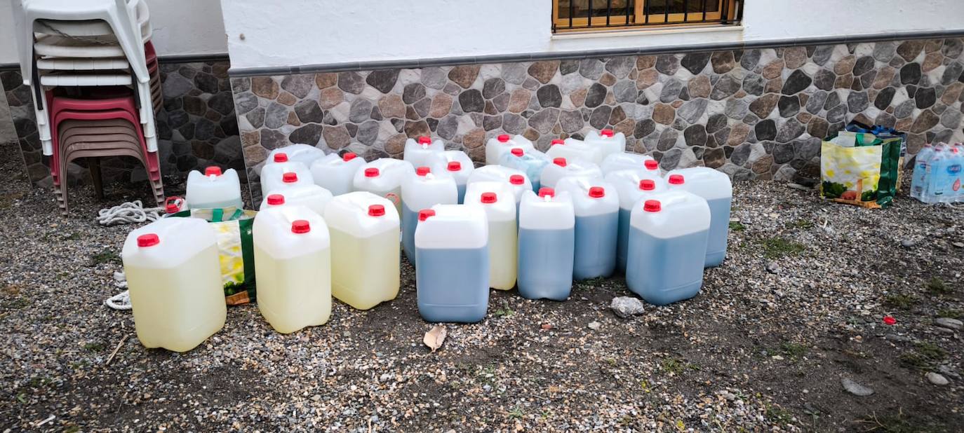 La Guardia Civil encuentra 84 bidones de gasolina para surtir esta embarcación, que se iba a emplear presuntamente para tráfico de personas, junto a la ermita de Los Yesos en Sorvilán