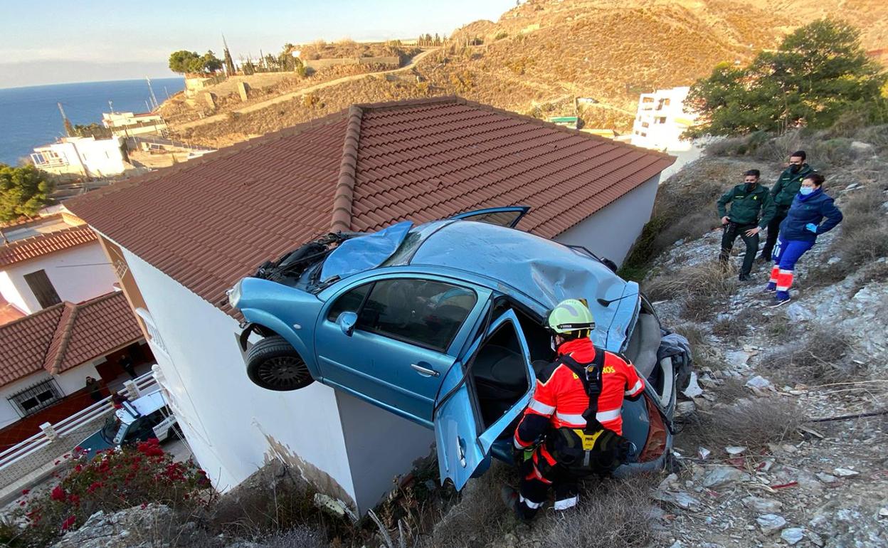 Herido el conductor de un vehículo en La Rábita tras caer en el tejado de una casa desde un desnivel