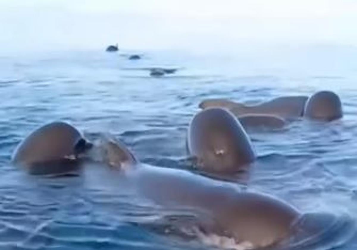 Tal y como se puede apreciar en el vídeo compartido por el alcalde de Almuñécar, Juan José Ruiz Joya, en la red social Instagram, los calderones visitaron La Herradura en grupo, en familia. «Suelen conformar unidades sociales de entre 10 y 20 ejemplaes. Las manadas están formadas principalmente por las hembras y su descendencia. Los vínculos son muy estrechos», señala la doctora en Biología Marina y experta en cetáceos Cristina Otero Sabio.