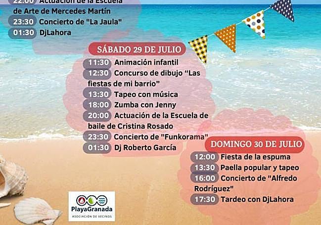 Playa Granada gana fuerza e identidad propia como vecindario. El barrio turístico por antonomasia de Motril celebrará por primera vez este fin de semana unas ... fiestas populares. Desde el 28 al 30 de julio, los residentes podrán disfrutar de actividades y conciertos en el jardín frente a la Iglesia.