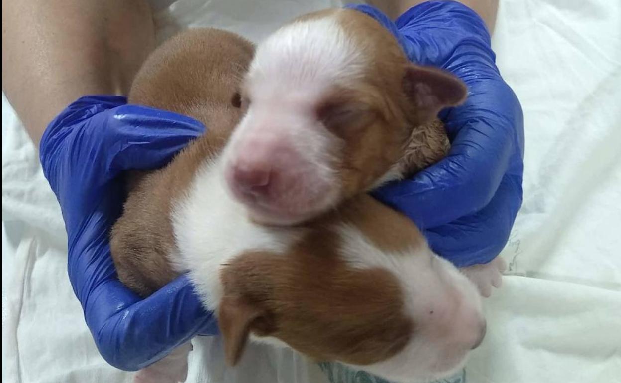 Rescatan a dos cachorros abandonados dentro de un contenedor de basura