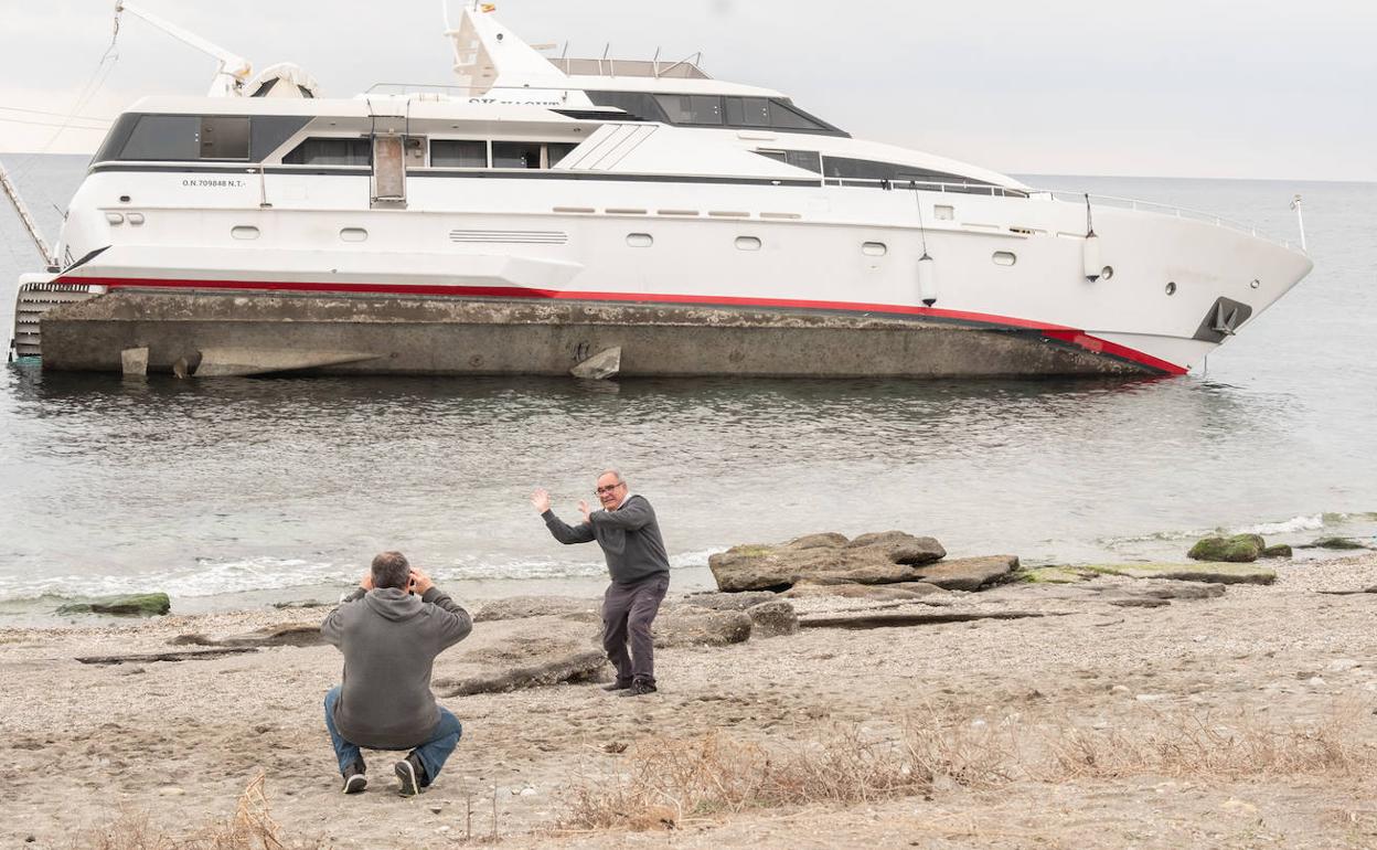 La mañana de ayer sábado fue un goteo constante de personas que se acercaron a presenciar el estado del 'Sk Yacht'. Todos lo hacían además con la misma finalidad, tomarse una foto de recuerdo con la embarcación como telón de fondo.
