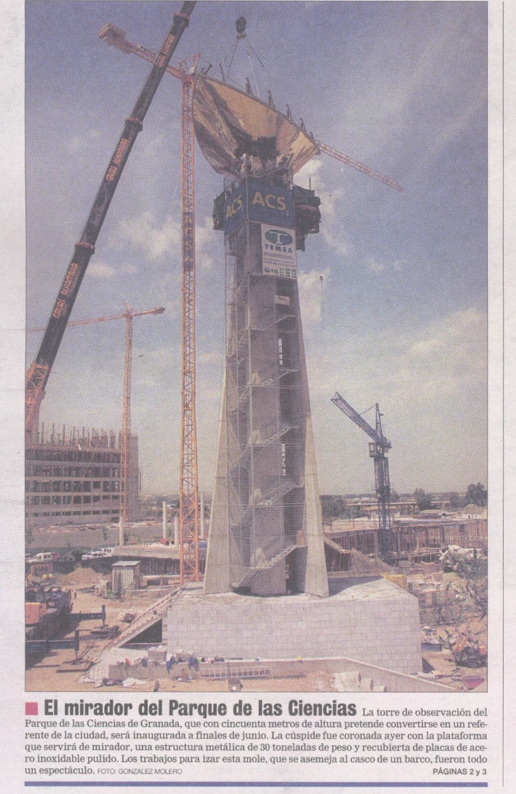 Este es uno de los proyectos en los que Granada se volcó y que salieron bien, como ocurrió con la torre de observación y mirador del Parque de las Ciencias, que fue portada durante el mes de junio del año 2000. Sus cincuenta metros de altura siguen siendo hoy un referente del 'skyline' de la capital.