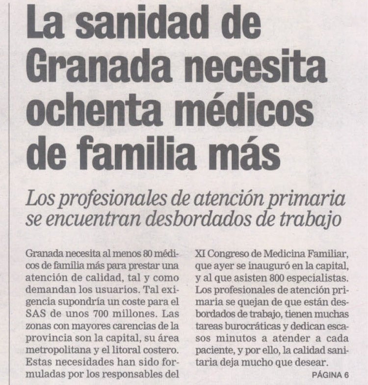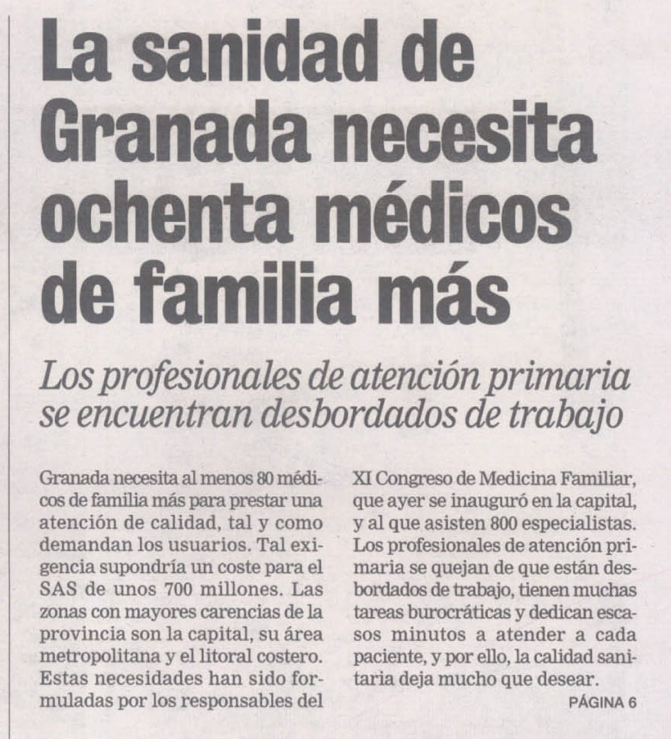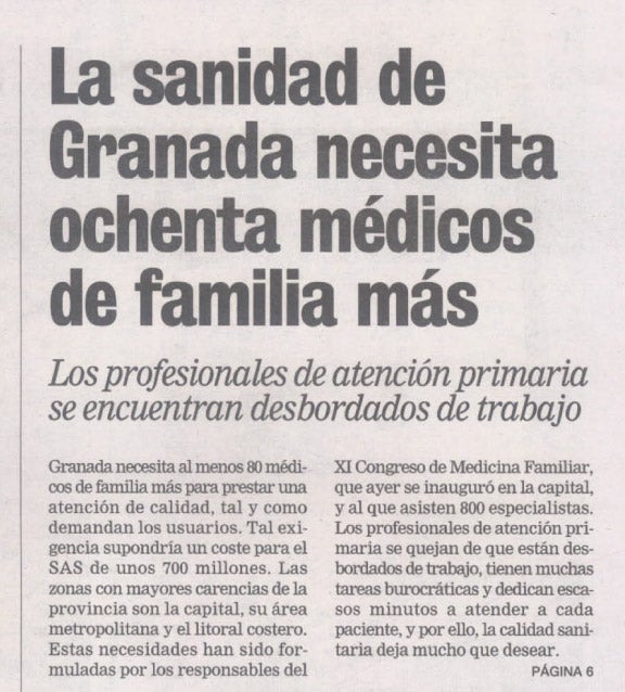 «La sanidad de Granada necesita ochenta médicos de familia más», rezaba el principal titular de portada de IDEAL del 2 junio de 2000. Si se volviese a publicar el mismo hoy, casi veinticinco años después, sorprendería a pocos. De hecho, la situación del sistema sanitario se ha convertido en uno de los principales problemas para los andaluces en este cuarto de siglo.