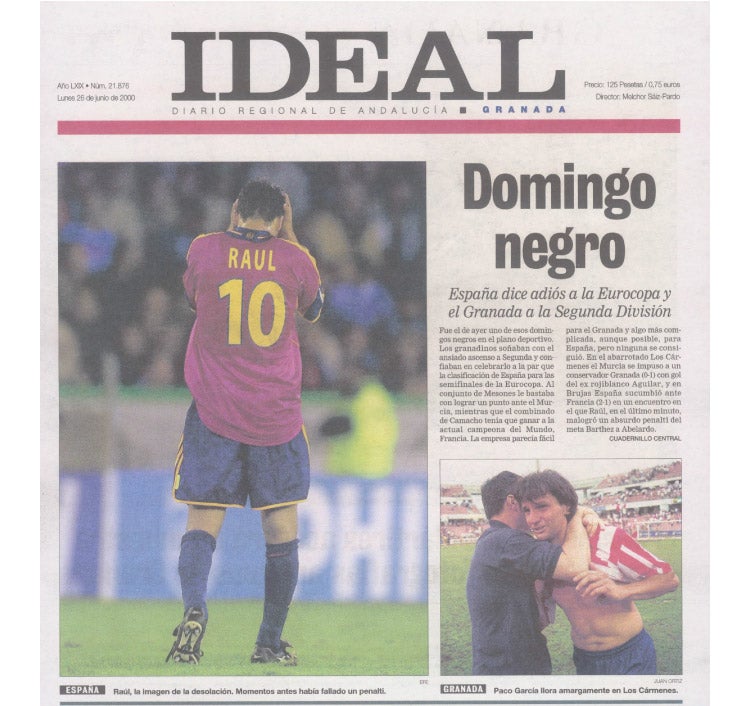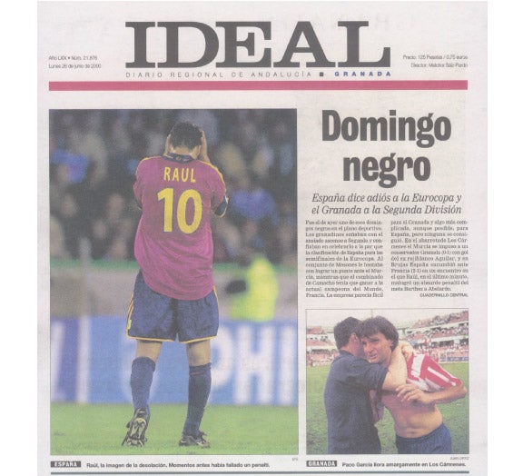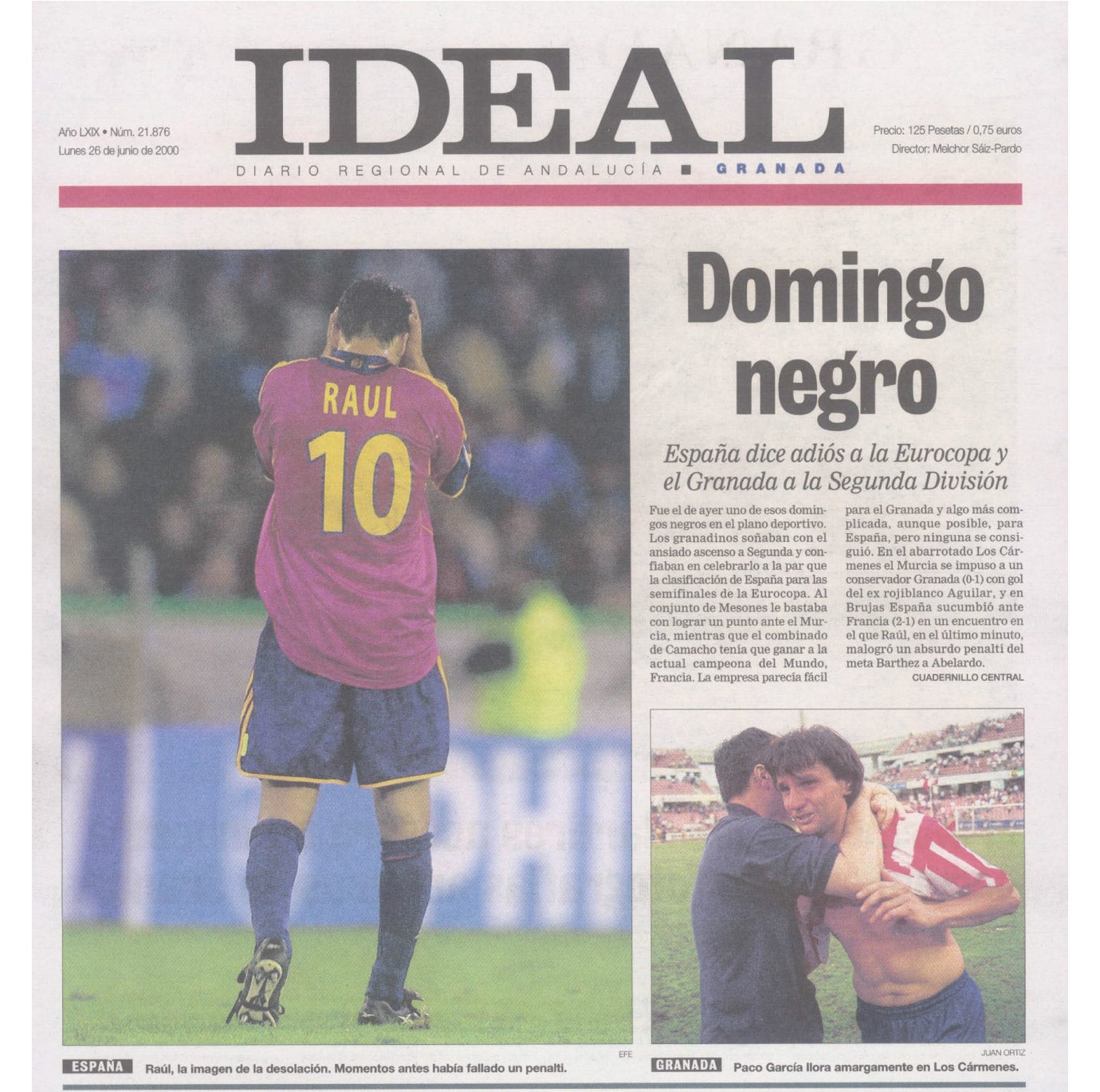 Tampoco fue el 2000 un año de buenas noticias para los aficionados al deporte. «España dice adiós a la Eurocopa y el Granada a la Segunda División» en la que sí se encuentra tanto tiempo después, señalaba IDEAL el 28 de junio.