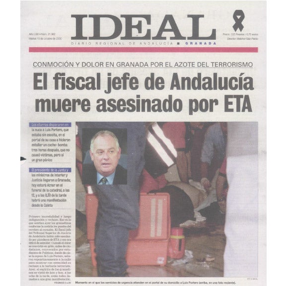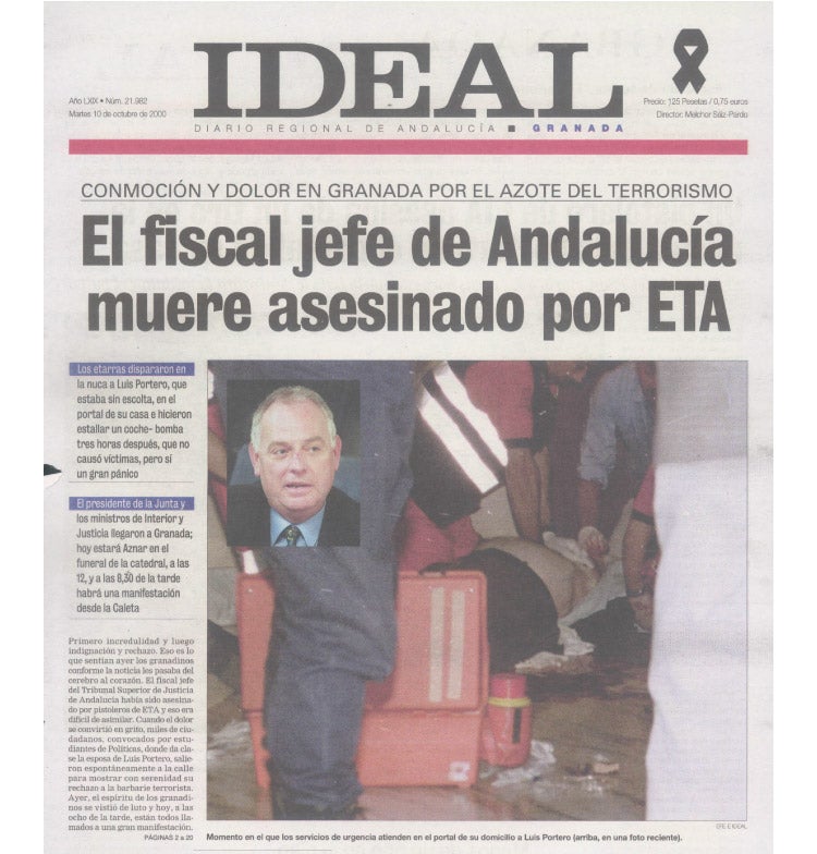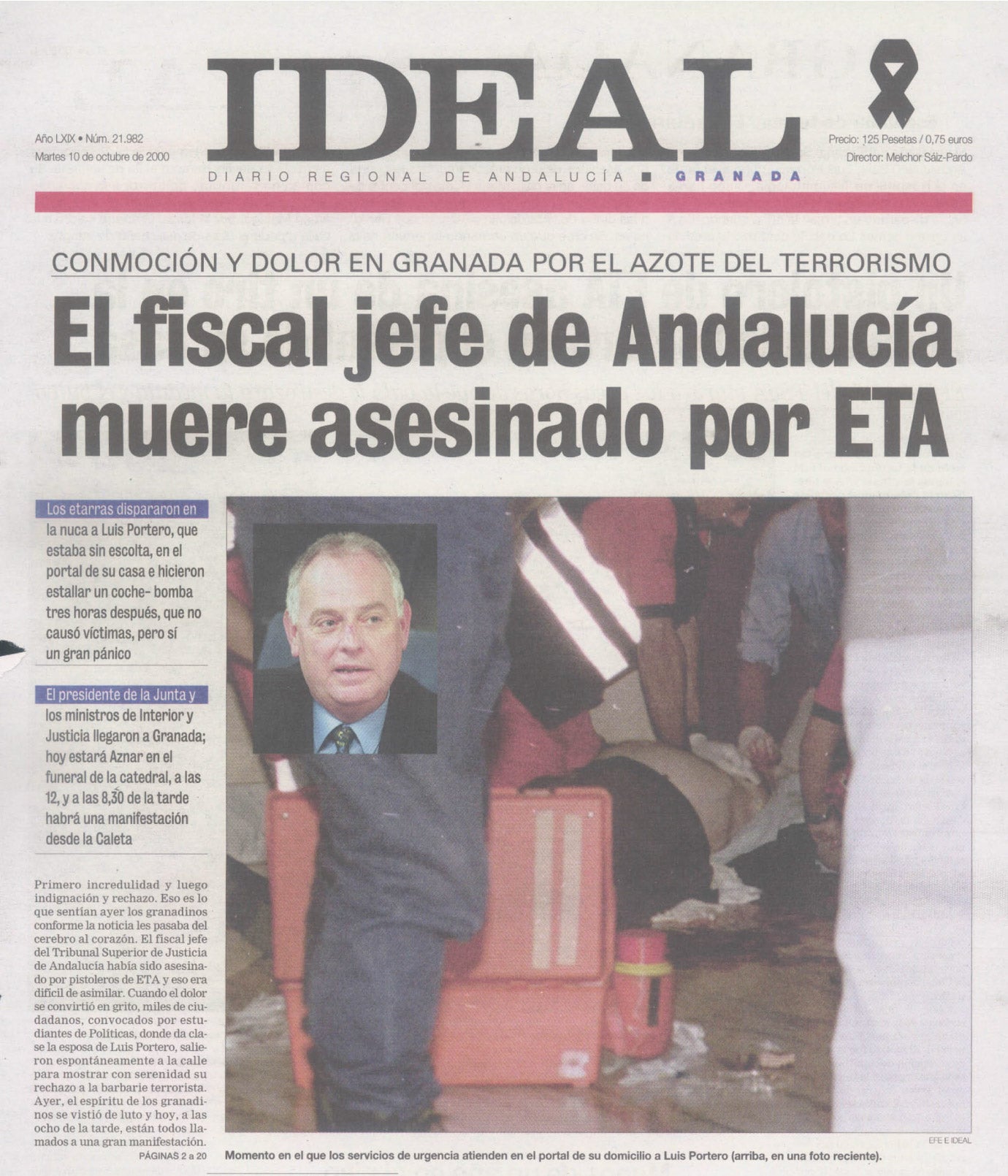 Una de las mejores noticias que dejan tras de sí estos casi 25 años es la desaparición de las portadas de los atentados y asesinatos de la banda terrorista ETA. El 10 de octubre de 2000, a toda página, IDEAL anunciaba que Luis Portero, entonces fiscal jefe de Andalucía, había sido asesinado de un disparo en la nuca. «Conmoción y dolor en Granada por el azote del terrorismo», resumía el periódico del día. Las noticias, editoriales y panegíricos se sucedieron durante los siguientes días. Por suerte, hoy ETA ya no existe.