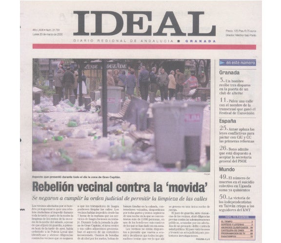 También era ya un problema entonces el precio de la gasolina, que tuvo espacio en diversas portadas de IDEAL a lo largo del primer año del siglo y que provocó, como en fechas más recientes, protestas de colectivos como agricultores y transportistas.