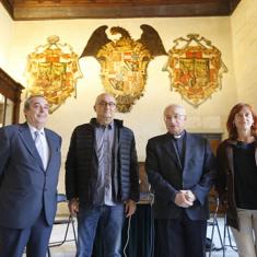 Pedro Salmerón, responsable de la ya finalizada obra de la capilla, concretó su interés por el mensaje de expresión del conflicto en la época entre la ciudad y la Capilla Real y las distintas fases de empoderamiento en distintos momentos. Recordó que la construcción de la Lonja la realizó el Cabildo municipal. "Los escudos representan esa pugna que expresa el dominio", subrayó Salmerón. También se refirió al estudio realizado sobre la iluminación de la sala para favorecer con una temperatura de color y una óptica especiales los colores de los escudos así como recuperar la visión de La Rendición de Granada, copia del cuadro de Francisco Padilla del S. XIX que se encuentra en el Senado.