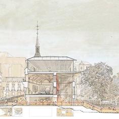 El diseño seleccionado responde holgadamente al programa de necesidades espaciales definido por el museo, sin necesidad de excavar nuevos sótanos y realzando los espacios históricos que forman el núcleo del edificio, en especial el Salón de Reinos.