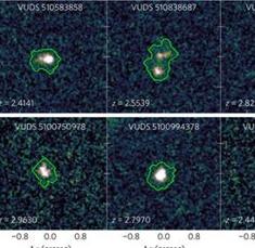 Así, este estudio, que ha analizado más de dos mil galaxias y ha hallado diez de estas galaxias primigenias, ha capturado lo que parece ser uno de los primeros episodios masivos de formación estelar del universo. Estas galaxias son unas treinta veces más pequeñas y unas cien veces menos masivas que la Vía Láctea, con formas compactas e irregulares que en algunos casos se asemejan a renacuajos y pares de galaxias en proceso de fusión.