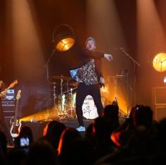 La gente no dejó de entrar hasta el último minuto de espera, incluso algún que otro rezagado un poco más tarde. Sólo diez minutos después de la hora prevista de inicio se descorrían las cortinas para dar pie a los gritos de emoción de toda la sala. Luces azules moviéndose en todas direcciones y unos televisores antiguos con diferentes imágenes en blanco y negro, desde las iniciales del cantante hasta un combate de boxeo.