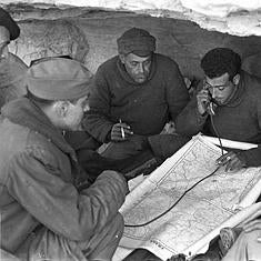 Fotografía inédita de Robert Capa que muestra unos combatientes republicanos en el Río Segre durante la Guerra Civil española.