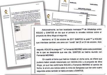 De hecho, Servinabar, la empresa dirigida por el empresario Antxon Alonso y de la que Santos Cerdán sería accionista, se constituyó durante 2015 y «en fechas muy próximas a su colaboración con el proyecto Mina Muga». Esta sociedad se formó pensando en la mina ya que, de acuerdo con los investigadores, meses antes incluso de que se constituyera, el administrador único de Geoalcali envió un correo electrónico donde asguraba que Koldo, el exasesor del exministro José Luis Ábalos, y Santos Cerdán debían «especialmente, estéis informados de los pasos» y destacaba que ellos eran «nuestros ojos y nuestros oídos».