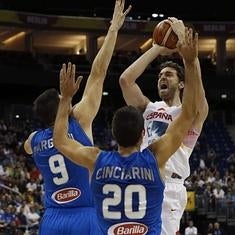 A pesar de que Gallinari (14 puntos al descanso) fue imposible de frenar para la defensa española, la buena noticia en el primer tiempo fue que el tiro exterior de los italianos tampoco fue bueno (3 de 12 triples en la primera parte), y así, mermada una de las claves del impredecible juego del rival, España se llevó, aunque por muy escasa ventaja, los dos primeros cuartos. Creció España, no sólo por el poderío de Pau Gasol por dentro en ambas partes de la cancha, sino también por su defensa en zona, el juego veloz y los balones interiores a Hernangómez y Reyes. Le funcionó perfectamente esa zona a España ante una Italia en la que Bargnani y Gallinari se encontraron muy sólo por dentro para intentar anular a los hombres altos del equipo nacional. Sin embargo, con lo mucho que les gusta tirar a los italianos, y dado que su porcentaje de triples tenía que mejorar, y esa fue la tumba para España a su regreso de los vestuarios.