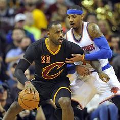 El alero Carmelo Anthony aportó 17 puntos y el ala-pívot novato latvio Kristaps Porzingis consiguió 13 por los Knicks, que estuvieron empatados a 75 en el cuarto periodo, antes de que James hiciese valer su condición de estrella.