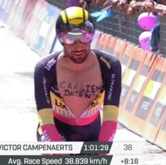Victor Campenaerts (Lotto-Jumbo) lució buen humor y originalidad para pedir una cita cita a una chica. En la crono del Giro, el campeón belga ... contrarreloj abrió su maillot para que se viera lo que llevaba escrito en el pecho. Un mensaje para ella... Lo que no se sabe es si le ha dado ya resultado.