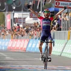 Ulissi superó la línea de meta con unos segundos de margen sobre sus perseguidores, tras 200 kilómetros de etapa, la primera de un corredor italiano en la primera etapa sobre suelo transalpino en esta edición del Giro, en la región de Calabria.