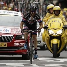 Comenzó a tener problemas desde el inicio de la etapa, a quedarse. Intentó seguir en carrera para bajarse de la bicicleta cuando faltaban 70 kilómetros hasta Para Loup. Dos semanas ideales para sus aspiraciones terminaron de mala manera porque algo le había sentado mal.