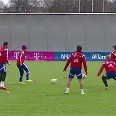 Evidentemente, a su llegada a Munich Guardiola no ha desestimado esta práctiva. No hay más que ver este vídeo de 18 segundos subido a Twitter por el usuario @Albertprat19 en el que se aprecia a pericia de los que controlan el balón para no perderlo pese a la presión de sus compañeros.