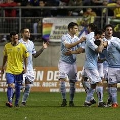 Salvi, a los 4 minutos, y Quintana en el 14, tuvieron dos buenas ocasiones para el equipo local pero la falta de acierto les penalizó. A los 24 minutos, llegó el primer gol visitante tras un pase del chileno Fabián Orellana al sueco John Guidetti, quien no perdonó ante el meta cadista Ballesté. En el resto de la primera parte, el Celta tuvo el balón en su poder durante más minutos, aunque sin acercamientos peligrosos hacia el área rival.