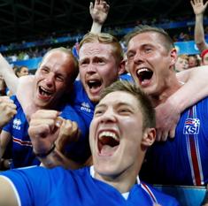 Los aficionados islandeses, eufóricos tras el pase a cuartos.