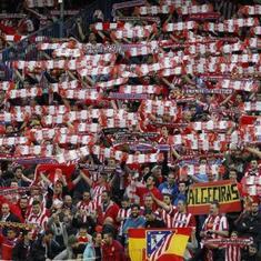 De hecho, resultó sorprendente ya que los aficionados locales se habían preparado para una noche de recuerdo. Con rojiblancos en el rincón del Manzanares desde mucho antes de lo habitual la mecha sólo podía prender. Además, los aficionados del Real Madrid pusieron de su parte para propiciar la reacción. Entraron 2.500 blancos en Vicente Calderón y desde su lugar en la esquina del fondo norte lanzaron el cántico importado de ultramar: «Indios decime que sé siente / haber perdido la final / te juro que aunque pasen los años / nunca lo vamos a olvidar / Que perdiste la final / contra el mágico Real / esa mancha no se borrará jamás. / Rojiblanco eres llorón / además de segundón / que cobardes los hinchas del Calderón». La referencia a la dolorosa derrota atlética en la final de la última Champions no recibió contestaciones con el 4-0 en el Calderón en el Liga o similares. «Madridista el que no bote fue lo más que respondió la hinchada rojiblanca antes del pitido inicial mientras eran testigo del intercambio las pancartas con el mensaje Respect (Respeto) y los mensajes de la UEFA en los altavoces de la UEFA en pro del respeto en el deporte y en contra de la discriminación -mientras, los madridistas coreaban: «¡Puto indio el que no bote!»-.