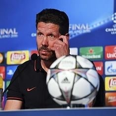 Más hablador se mostró cuando se refirió a cómo se imagina la final ante el Real Madrid. "Un partido muy tenso y equilibrado en el comienzo. La presencia de Casemiro le da una virtud para agruparse en la pérdida de pelota y le da fortaleza ofensiva", señaló el técnico rojiblanco, antes de augurar que "el que gane esa parte del partido tendrá mucho ganado". "En el inicio, el Madrid por su calidad técnica, proponga más juego", imaginó. Su gesto cambió a sonrisa cuando habló de cómo jugará su equipo: "Con once en el área de ellos. Todos apretaditos arriba (risas)". Más serio reconoció: "No vamos a cambiar mucho ninguno de los dos equipos. Nosotros hemos variado más en jugadores con respecto a Lisboa, pero la estructura es la misma. Las formas no van a variar mucho. La presencia de Casemiro los hace más peligrosos. El Madrid con espacios es muy peligroso".