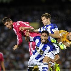 De pronto, empero, los madridistas se desconectaron por completo. Isco y Jamés no trabajaron en la recuperación, Benzema y Bale se quedaron arriba, Kroos no encimó y Modric no podía contra todos. En un córner, el Madrid volvió a errar como en la Supercopa ante el Atlético, ya que permitió una prolongación y el remate de Iñigo Martínez. Y sólo seis minutos después, De la Bella avanzó sin oposición y su magnífico centro lo remato Zurutuza, que a continuación sufrió un choque violento con Marcelo que le dejó groggy.