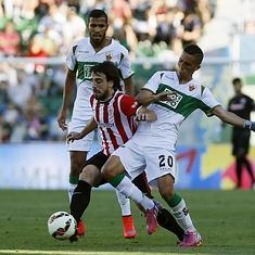 Moquera, Adrián y Fayçal Fajr se impusieron ampliamente a los centrocampistas del Athletic Club en la creación y la destrucción del juego y el Elche comenzó a generar ocasiones claras de gol casi sin esfuerzo.