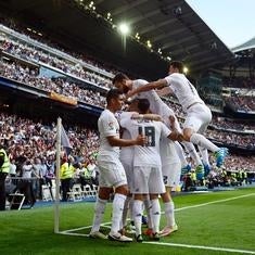 La primera parte fue una rampa de salida para las reivindicaciones particulares del vestuario del Real Madrid. La defensa mal cerrada del Eibar, los pasillos para el contraataque blanco y los deseos de los reservas configuraron un tobogán para la goleada. Cristiano Ronaldo se sirvió un contragolpe que sólo por un mal control tuvo que terminar con pase a Lucas Vázquez para que anotara el joven. Minutos después el portugués denegó el gesto generoso -aunque es el segundo máximo asistente de la Liga, con 11 pases de gol- para sumar su propio tanto en la tabla de los récords. El portugués es el primer futbolista que anota 30 o más veces durante seis temporadas consecutivas en Primera División. El hombre que cerró la cuenta antes del descanso fue Jesé en una nueva jugada veloz que destripó la estructura defensiva de los visitantes.