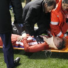 Acto seguido, los 21 futbolistas restantes dieron la voz de alarma: entraron las asistencias, los banquillos y el cuerpo técnico a socorrarle. Especialmente impactante fue la cara de un Giménez desconsolado, que no podía parar de llorar de espaldas a Torres. Pasados cuatro minutos, el fuenlabreño fue trasladado al hospital en ambulancia, y una vez terminado el choque se conoció que el 'Niño' ya se encontraba consciente y hablando, afortunadamente. El primer parte médico describía un traumatismo craneoencefálico con pérdida de conocimiento, que posteriormente recuperó.