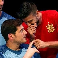 Gerard Piqué bromea con Casillas el martes en Las Rozas.