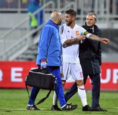 Sergio Ramos, capitán del Real Madrid y la selección española, sufrió ante Albania un esguince en el ligamento lateral de su rodilla izquierda, como confirmó ... el doctor Óscar Celada, que aseguró que el tiempo de baja irá en función del grado del percance, aunque el defensa deberá estar al menos un mes alejado de los terrenos de juego.
