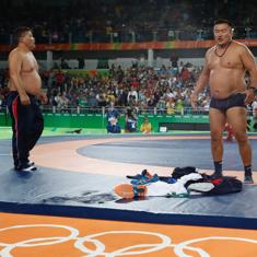 El combate de lucha olímpica en la categoría de hasta 65 kilogramos entre el mongol Mandakhnaran Ganzorig y el uzbeco Ikhtiyor Navruzov terminó de manera ... insólita. Primero, en el terreno deportivo porque el primero ganaba a falta de dos segundos y comenzó a celebrarlo. En principio, había conseguido un bronce que había desbordado su alegría. Pero los jueces castigaron su júbilo antes de tiempo y señalaron un punto de penalización que igualó el combate. Por decisión ténica la victoria fue para el uzbeco.