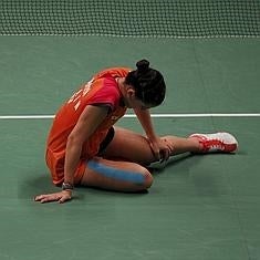 "Intenté no pensar en mi tobillo, porque me asusté bastante, creía que no podría jugar", comentó Marín a la prensa después de un partido en el que la española dio el susto al doblarse el tobillo en la primera manga y sufrió más de lo esperado ante Pai. "Tengo un fisioterapeuta aquí, así que me va a tratar ahora".