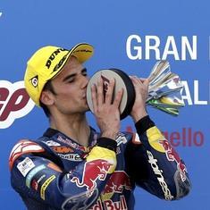 La carrera, como siempre, dejó un grupo que llegó a contar hasta con 16 componentes, y que fue rompiéndose y reagrupándose a lo largo de las 20 vueltas, merced a tirones en la cabeza o a incidentes como las caídas de Fabio Quartararo o de Karel Hanika junto a Efrén Vázquez. Esta última acción dejó a solo seis pilotos en la pelea por la última vuelta, con Miguel Oliveira al frente el líder más sólido del día-. Aunque el portugués se vio rebasado por varios de sus competidores justo al entrar en la primera curva del último giro. Oliveira tenía bien estudiada toda la segunda mitad del trazado, lo que le permitió llevar a su KTM a la segunda victoria consecutiva, cruzando la meta con 71 milésimas de ventaja sobre el líder, Danny Kent, que salió reforzado de Italia: llegó con 37 puntos sobre Enea Bastianini y se fue con 46. Tercero en meta fue Romano Fenati, poco premio para las expectativas locales (tras Fenati entraron otros tres italianos). Jorge Navarro, séptimo, fue el mejor español, confirmando la mala racha de nuestro motociclismo en la clase pequeña. Siete Grandes Premios llevan los españoles sin ganar, desde la carrera de Malasia de 2014. El país que se estrenó en Italia fue Portugal, que nunca antes había ganado una carrera en el Mundial de Motociclismo.