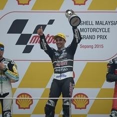 Tras Zarco y Luthi completó el podio Jonas Folger. El piloto de la escudería AGR propiedad de Karlos Argiñano peleó en las primeras vueltas con Alex Rins, hasta que el piloto español se fue al suelo, dejándole el camino expedito hacia el tercer puesto. Con esto Folger sumó su cuarto podio de la temporada, entre ellos dos victorias, el mismo número logrados este año por Rins y Tito Rabat. Los dos pelearán en Valencia por el honor del subcampeonato, con el pupilo de Sito Pons con ocho puntos de ventaja sobre el campeón del mundo de 2014.