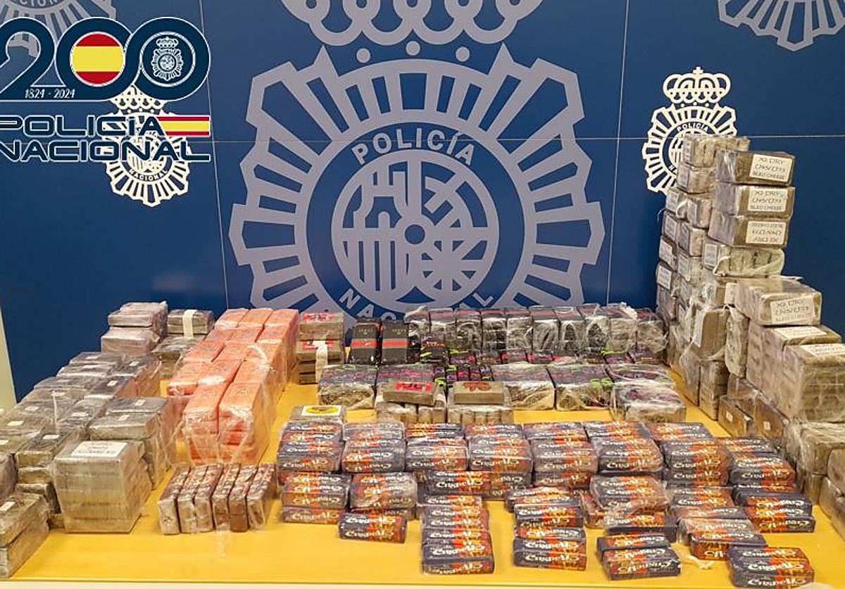 Paralelamente, en uno de los domicilios investigados, se detuvo a otro integrante de esta organización criminal, justo cuando salía del mismo portando en una maleta rígida más de 30 kilos de hachís envuelto y con apariencia de tabletas, bellotas y chocolatinas.