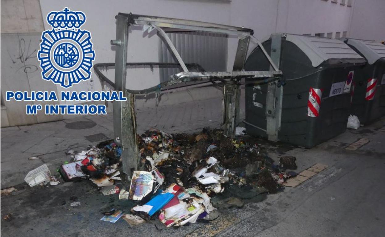 Las averiguaciones realizadas en el lugar de los hechos apuntaban a un varón, habitual de la zona, el cual había sido visto momentos antes introduciendo lo que podían ser unos petardos en el interior del contenedor, permaneciendo junto al mismo incluso cuando ya se apreciaban las llamas en su interior. Así mismo, consiguieron una descripción precisa del presunto autor, además de su domicilio. Finalmente, el presunto autor fue detenido y trasladado hasta dependencias policiales.