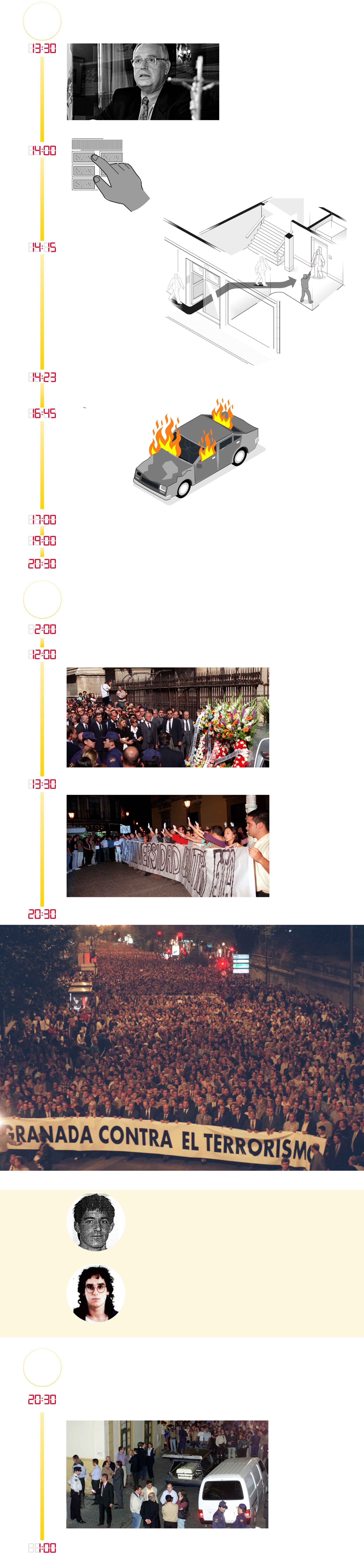 A continuación reconstruimos la cronología del día en que ETA golpeó a Granada. Un repaso por lo ocurrido, hora a hora, desde el asesinato hasta la detención de los autores varias jornadas después.