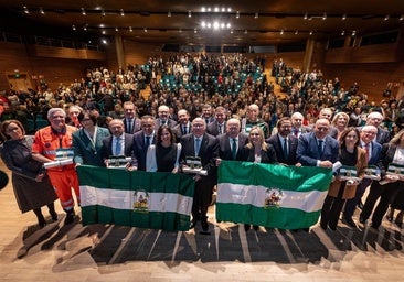Peralta ha recogido la Bandera de la Proyección de la Provincia y también ha sido el encargado de dar las gracias en el escenario, en nombre de las diez personas e instituciones que han recibido las Banderas de Andalucía, la máxima distinción del Gobierno andaluz en la provincia. Lo ha hecho con un original discurso, muy aplaudido, en el que ha entrelazado a cada uno de los distinguidos con artículos del estatuto de autonomía andaluz «para que seamos conscientes de que está plenamente vigente y lo respetemos como un gran logro del referéndum de febrero de 1980».