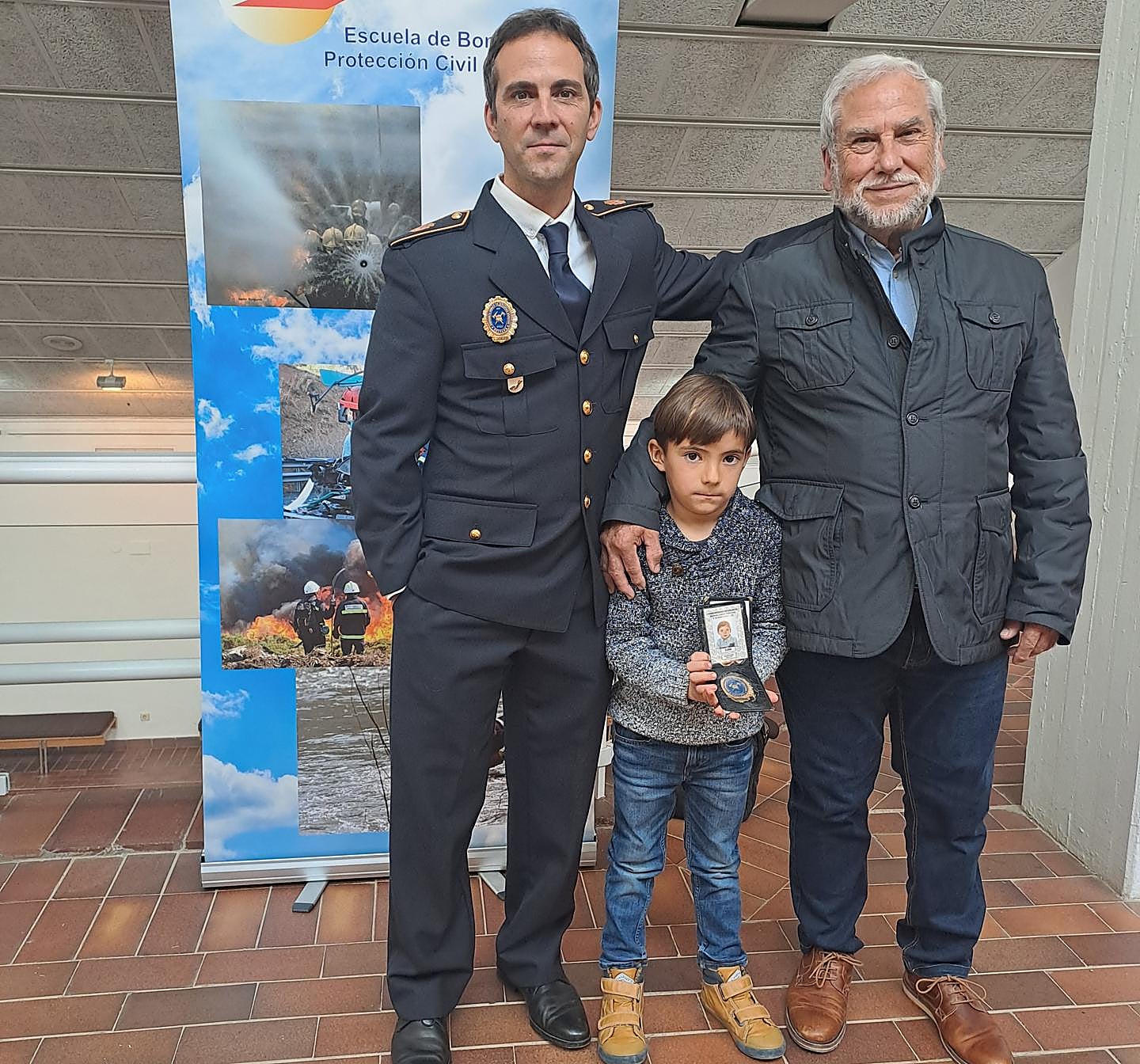 Néstor Pérez, con siete años, fue el protagonista del vídeo homenaje al Cuerpo de Bomberos con motivo de la festividad de su patrón, San Juan ... de Dios. Un niño risueño que disfrutaba junto a su padre, del mismo nombre, y sus abuelos, Victoria Rodríguez y Juan de Dios Pérez, también bombero. Toda una saga que, por los visos del peque de la familia, asegura el futuro.