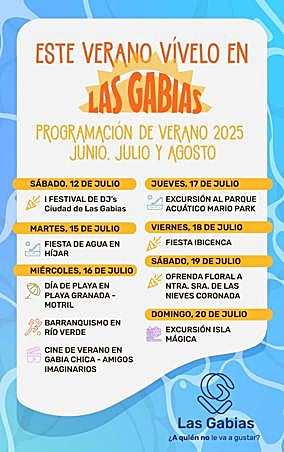 El verano en Las Gabias promete ser mucho más que calor. Bajo el lema «Este verano, vívelo en Las Gabias», el Ayuntamiento presenta una programación estival con propuestas para todos los públicos, donde el ocio saludable, la cultura, y el deporte se dan la mano para llenar de vida cada rincón del municipio