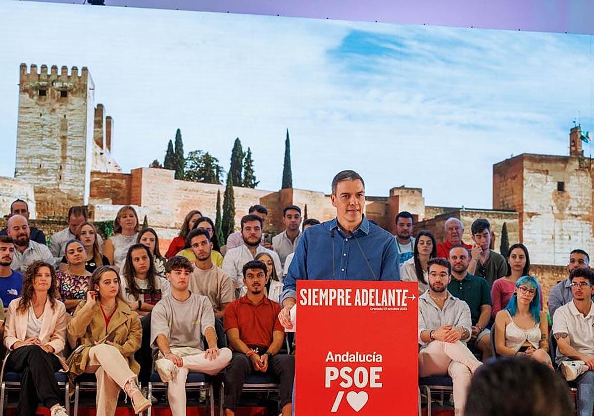El presidente del Gobierno en funciones, Pedro Sánchez, desvela en su mitin cómo se fraguó la elección de la capital nazarí como sede de la cumbre: «Tenía que ser el lugar para celebrarla»