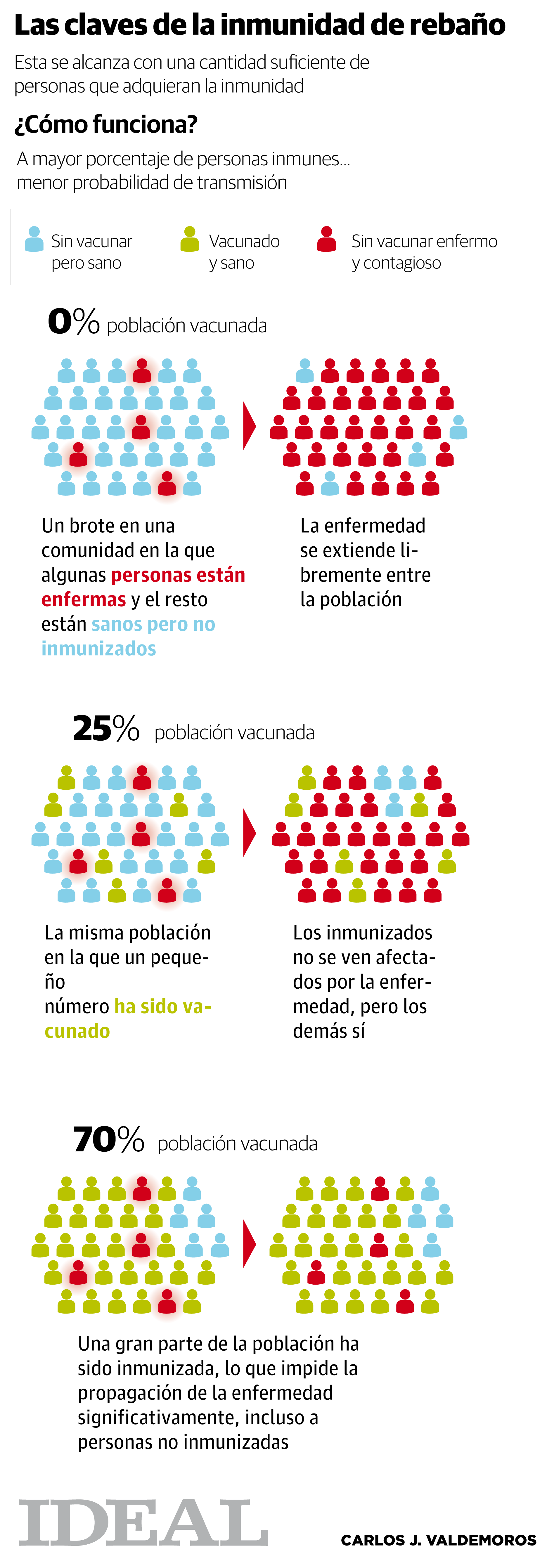 Granada lograría la inmunidad de grupo el próximo 11 de julio. O al menos podría tener entonces a 492.058 personas con la pauta completa, ... lo que representa al 70% del censo total de la población. Un porcentaje que sería suficiente para frenar la cadena de contagios, tal y como creen los expertos sanitarios.