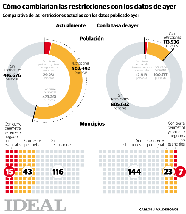 Granada capital y otros 35 municipios están ya en disposición de poder dejar atrás alguna de las restricciones a las que se han visto ... sometidos esta última semana por tener tasas de contagio por encima de los 500 casos por cada 100.000 habitantes.